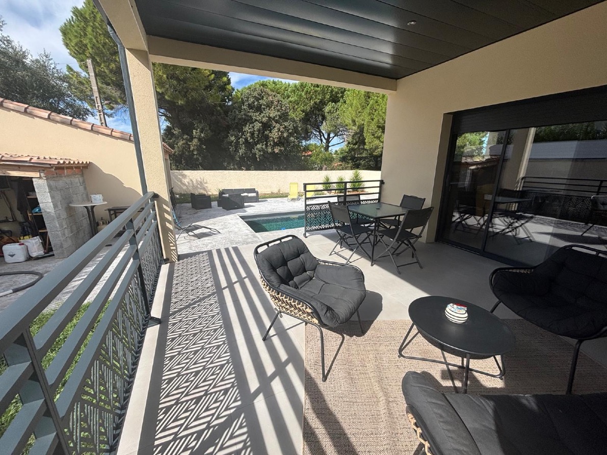 Fleury d'Aude Wunderschöne ebenerdige Villa mit einer Wohnfläche von 140 m², freistehend auf 3 Seiten, auf einem 670 m² großen Grundstück. Diese Villa bietet Ihnen ein großes Wohn- und Esszimmer mit einer ausgestatteten amerikanischen Küche auf insgesamt 60 m², mit Zugang zur Terrasse und zum Pool. Ein Flur führt zu einer Waschküche/Speisekammer, zwei Kinderzimmern mit Duschbad sowie einer Elternsuite mit Ankleidezimmer und eigenem Duschbad. Sie verfügt außerdem über einen thermodynamischen Warmwasserspeicher, eine 18 m² große Garage, einen gemauerten Pool ohne vis-à-vis. Das Viertel ist ruhig und in der Nähe von Geschäften und Schulen. Die Außenanlagen, darunter ein Poolhaus-Bereich, werden Sie begeistern.