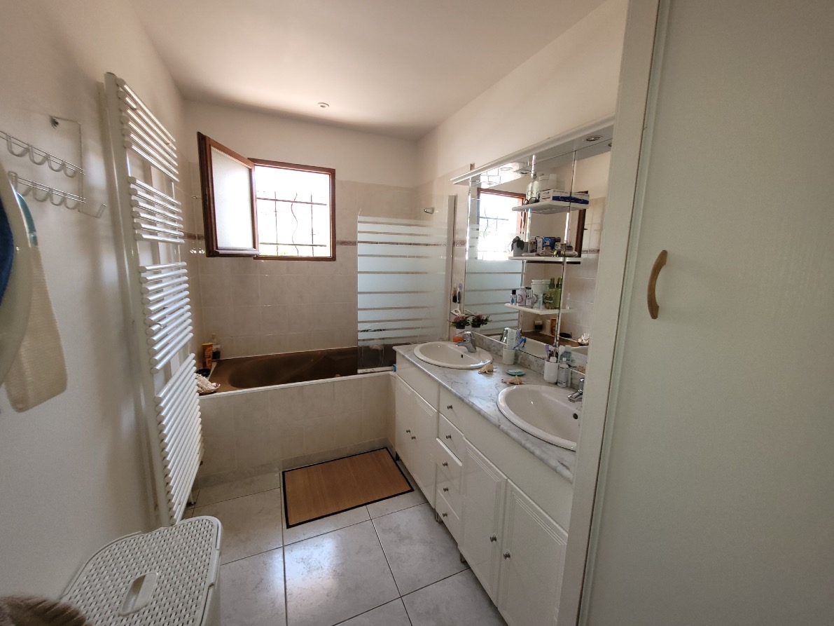 Ebenerdige Villa vom Typ 4/5 mit einer Wohnfläche von 102 m², freistehend auf 4 Seiten, Baujahr 2003. Diese Villa bietet Ihnen ein großes Wohn- und Esszimmer mit offenem Bürobereich, eine ausgestattete Küche sowie einen Flur, der zu den 3 Schlafzimmern und dem Badezimmer führt. Die 25 m² große Garage verfügt über ein ausgebautes Obergeschoss, das als viertes Schlafzimmer genutzt werden kann. Die Villa befindet sich in sehr gutem Allgemeinzustand und liegt nur wenige Schritte von Geschäften und Schulen entfernt.